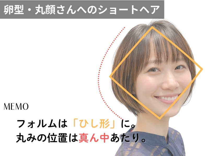 卵型や丸顔タイプの方には、フォルムがひし形になるショートヘア がおすすめ。