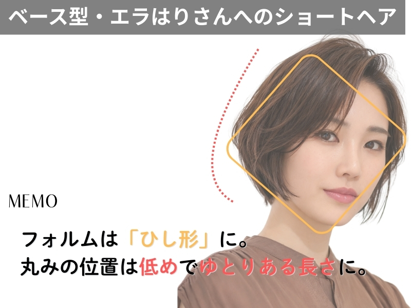 ベース型・エラ張りさんのショートヘアは、削りすぎない・タイトにしすぎないこの2点を意識することで、失敗のリスクを大きく減らすことができます。