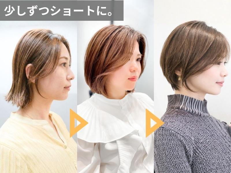 段階を踏む前提でオーダーすることで、失敗のリスクを減らしながら、ショートヘアに近づいていくことができます。