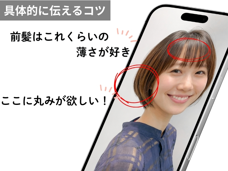 を言葉にして伝えることで、自分の髪で再現したときのイメージを、事前に共有しやすくなります。