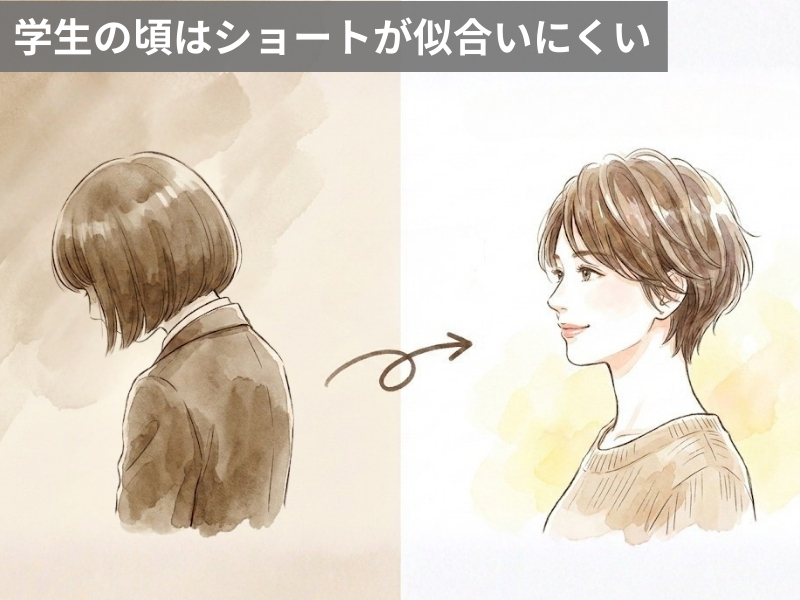 だからこそ私は、学生の頃は、構造的にショートカットが似合いにくい条件が重なりやすい時期だと感じています。